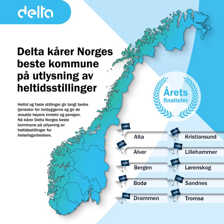 For fjerde årets på rad kårer Delta Norges beste kommuner på utlysing av heltidsstillinger for helsefagarbeidere.