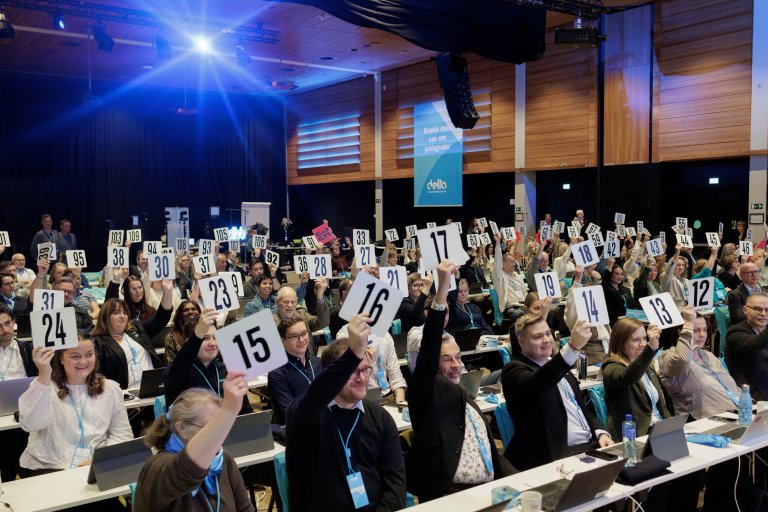 Enstemming "ja" til at Delta og Negotia skal slå seg sammen under representantskapet til Delta. Foto: Adrian Nielsen