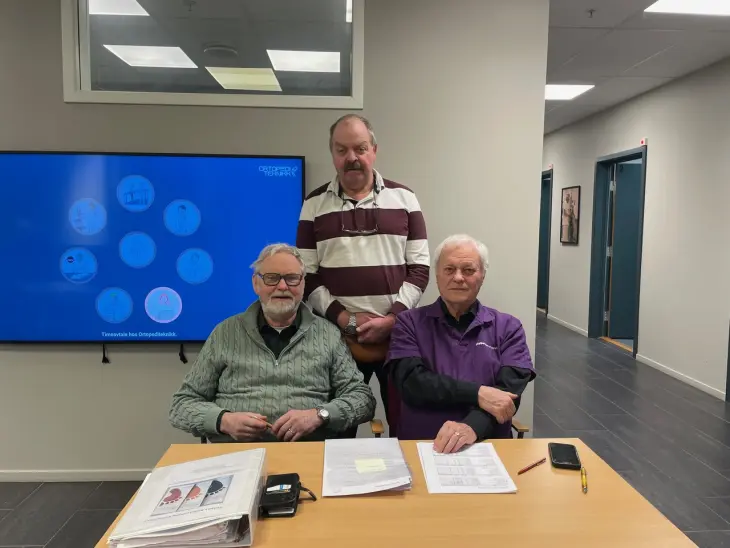 Viktig prosjekt: Dagfinn Østbye (t.v.) er en av opphavsmennene til «Prosjekt risikovurdering diabetesføtter». Her sammen med Dag Erik Andersen (bak), som selv er benamputert og Bjørn Andresen fra Diabetesforbundet Oslo Øst.